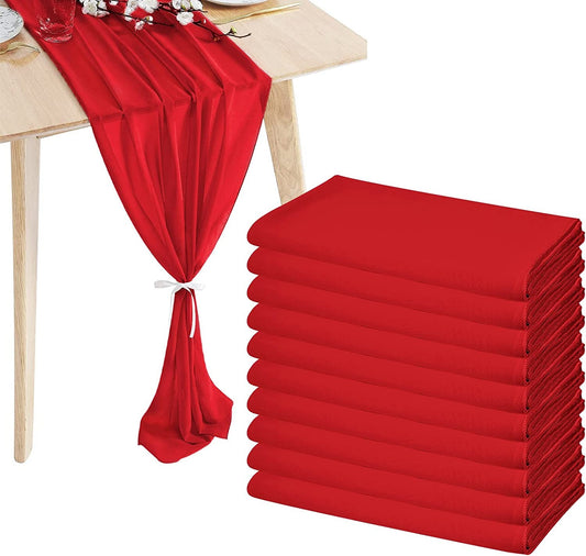 12 Pack - Chiffon Table Runner Elegant Sheer Table Runner 29"X10ft Long Rustic Table Runners for Wedding Bridal Shower Table Red