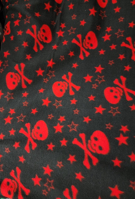 Skulls & Crossbones Print - Anti Pill Theme Fleece Fabric, 60” Inches Wide – Sold By The Yard Black/Red
