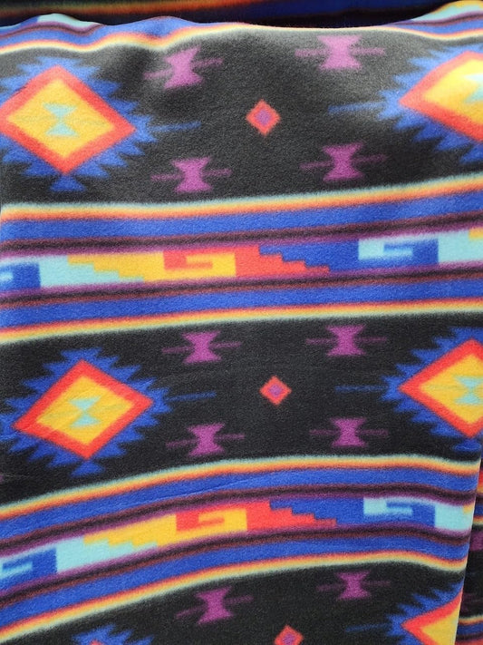 Black Aztec Print - Anti Pill Theme Fleece Fabric, 60” Inches Wide – Sold By The Yard