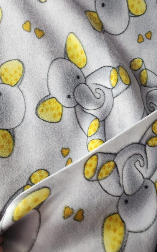Elephant Print, Silver/Yellow - Anti Pill Theme Fleece Fabric, 60” Inches Wide – Sold By The Yard