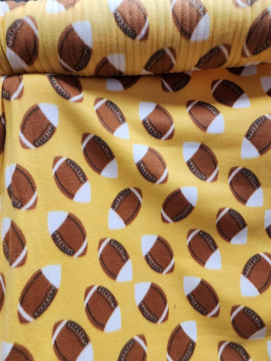 Footballs Checkered Diamonds - Anti Pill Theme Fleece Fabric, 60” Inches Wide – Sold By The Yard Yellow
