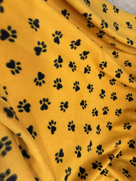 Paws Print - Anti Pill Theme Fleece Fabric, 60” Inches Wide – Sold By The Yard Gold/Yellow
