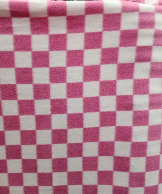 Pink/White Chequers/Checkered - Anti Pill Theme Fleece Fabric, 60” Inches Wide – Sold By The Yard