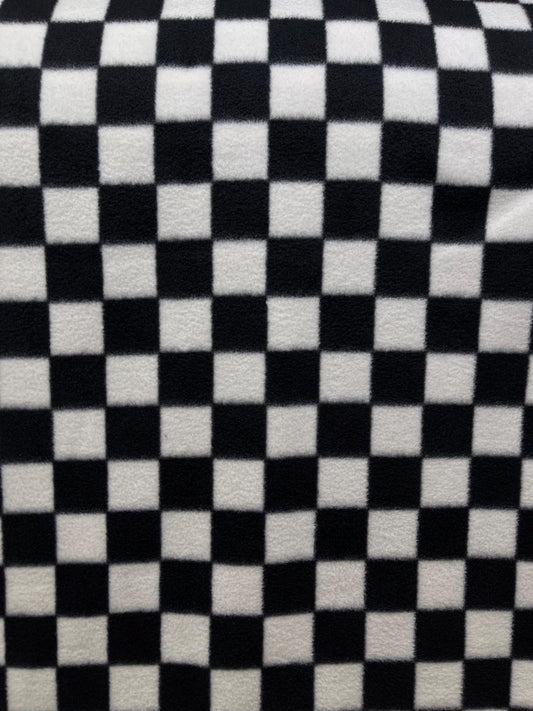 Black & White Checkered Print - Anti Pill Theme Fleece Fabric, 60” Inches Wide – Sold By The Yard Black/White