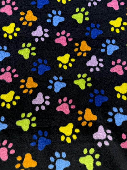 Rainbow Shaped Kitty Soft Paws Print - Anti Pill Theme Fleece Fabric, 60” Inches Wide – Sold By The Yard