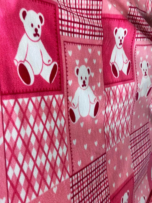 Teddy Bear Fuchsia Blocks Anti Pill Animal Theme Fleece Fabric, 60” Inches Wide – Sold By The Yard