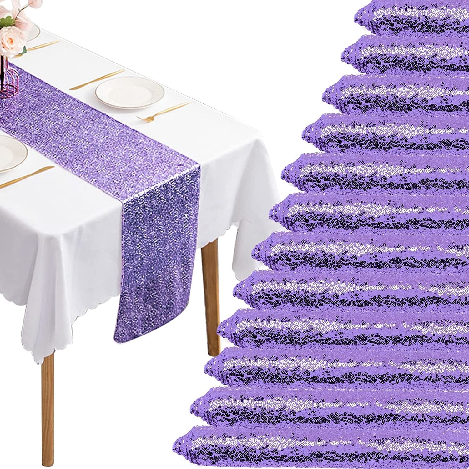 12 Pack - 12" X 90" Inch Sequin Table Runner Glitter Dining Runner for Birthday Wedding Engagement Bridal Baby Shower Bachelorette Lavender