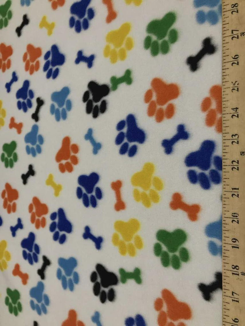 Paws Bones Rainbow Print - Anti Pill Theme Fleece Fabric, 60” Inches Wide – Sold By The Yard