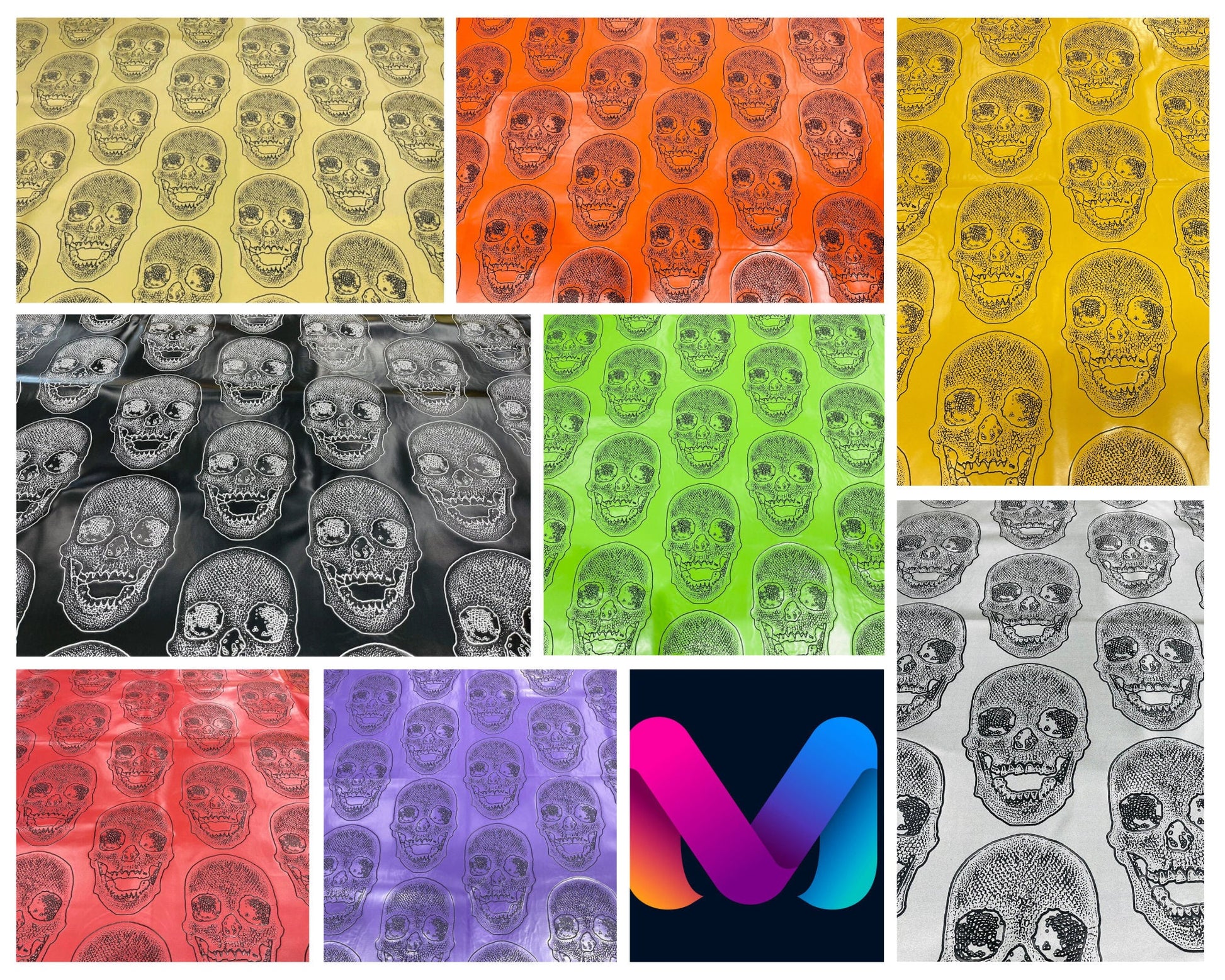 The Skull faux fabric is a wonderfully detailed Faux Leather which has a felt backing. Made with a patented combination of Urethane and PVC. Urethane gives this Skull Faux Leather an unequaled real Leather feel and the PVC adds to its strength.